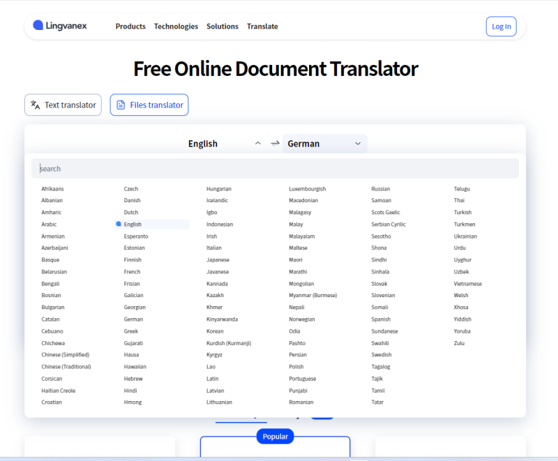 第一步,进入Lingvanex官网,找到“文档翻译”入口;