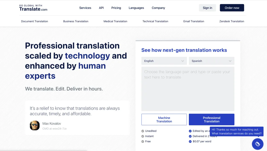 步骤二:左边选“中文”,右边选“英语”点“Translate Now”,等10秒出结果