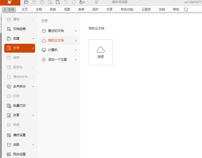 步骤一:打开安装好的福昕PDF阅读器,点击左上角的文件,打开需要操作的PDF文件。