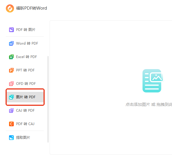 第一步:只需要打开安装好的福昕PDF转换器。点击左侧的【图片转PDF】功能。