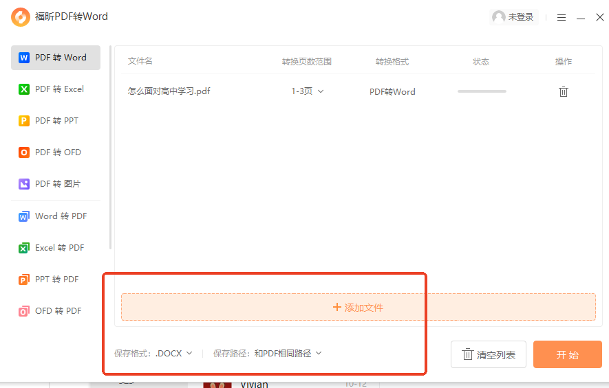 步骤三:点击添加文件可以进行批量文件的转换,最后也别忘记确认保存格式以及保存路径,全部确认无误后点击开始即可开始转换啦。