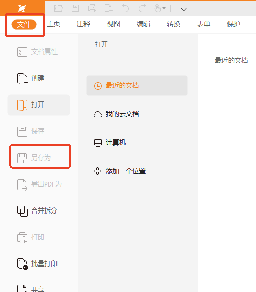 打开之后我们需要点击左上角的【文件】并点击,找到【另存为】功能,将转换好的PDF文件保存起来。