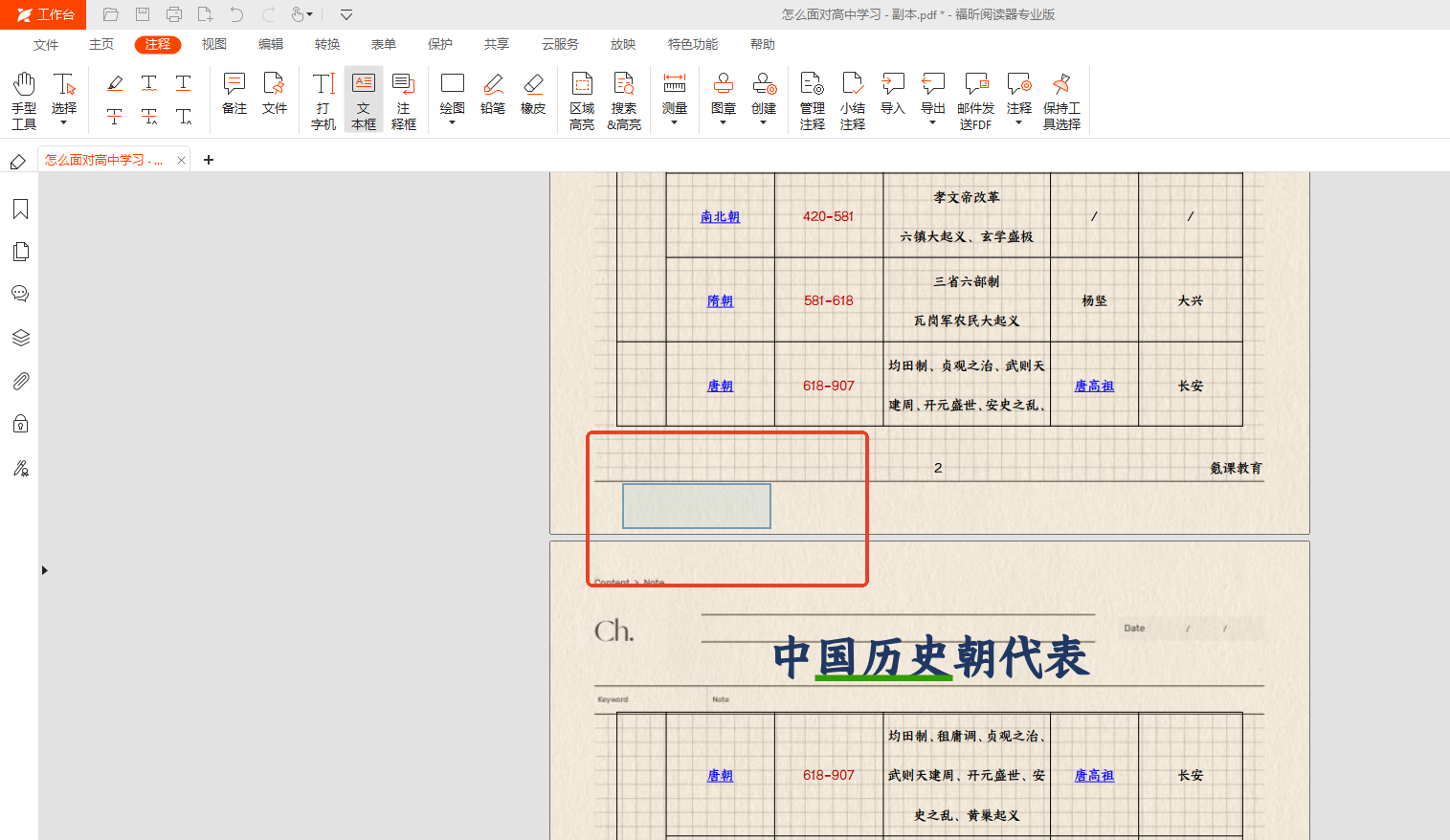步骤二:在顶部点“注释”栏,找到“文本框”工具点一下,鼠标立马变成十字形,特好认。