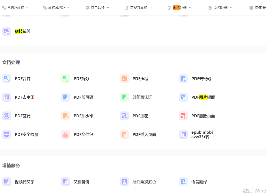 步骤二:找到PDF处理功能区里的【PDF图片提取】功能、
