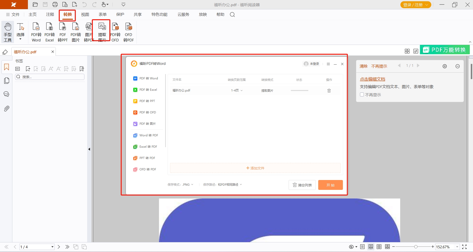 怎么使用福昕PDF阅读器将文件提取成图片?