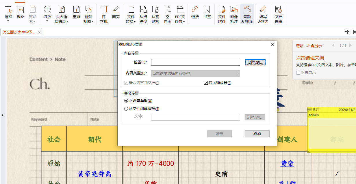 福昕PDF编辑器真的超好用!想编辑PDF、合并拆分文件、转换格式、加水印去水印这些功能全都有。最厉害的是还能在PDF里加视频,而且什么格式的视频都能放进去,MP4、AVI这些常见的都支持。操作特别简单,新手也能轻松学会。加完视频还能随便调整大小、位置和播放方式,让你的PDF变得特别生动,做课件或者电子书都特别合适。