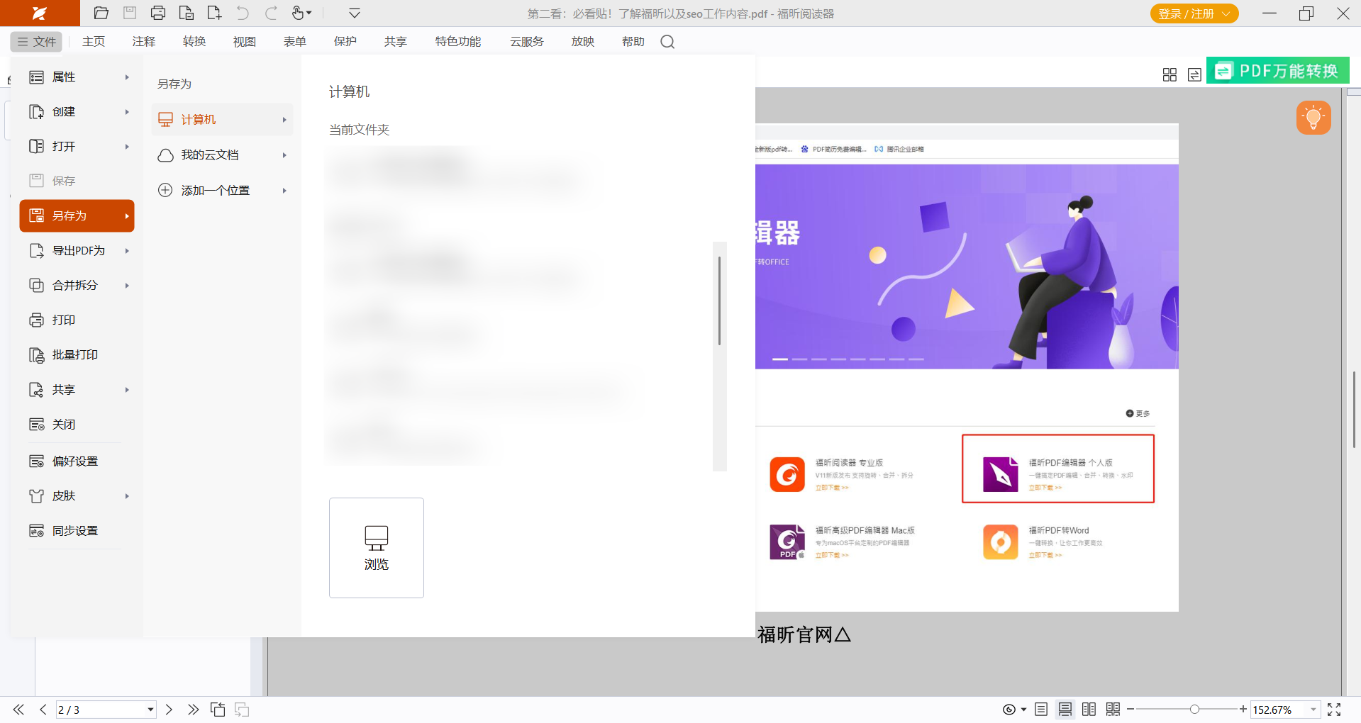 1. 先把CAJ转成PDF 用福昕PDF阅读器把CAJ文档转成PDF格式(步骤和之前一样,导入CAJ自动转),保存到本地。