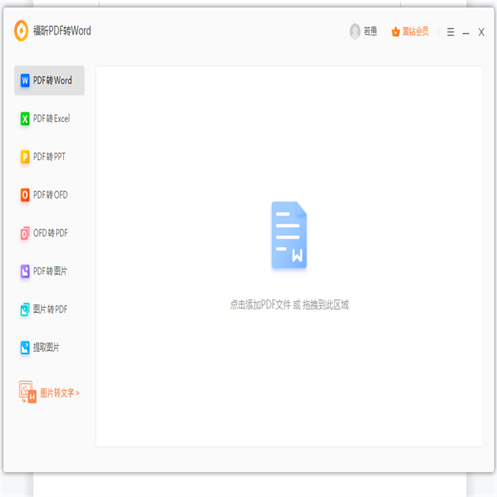 到福昕官网下载并安装福昕PDF转Word,最后双击打开福昕PDF转Word。选择“PDF转图片”,然后点击“添加文件”,将需要转换的PDF文件导入到软件中。