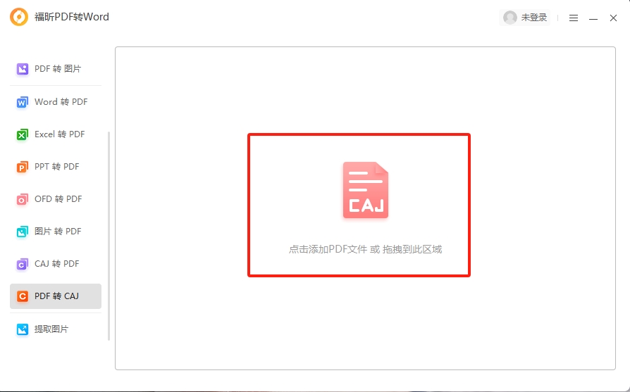 下载并安装福昕PDF转Word软件。打开软件后,点击页面上的“PDF转CAJ”。