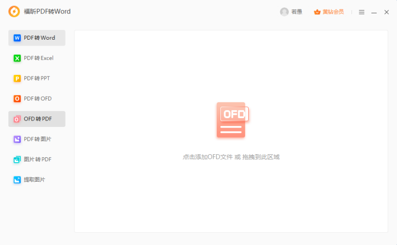 首先,在电脑中安装并打开福昕PDF转Word,随后在主界面找到【OFD转PDF】功能。