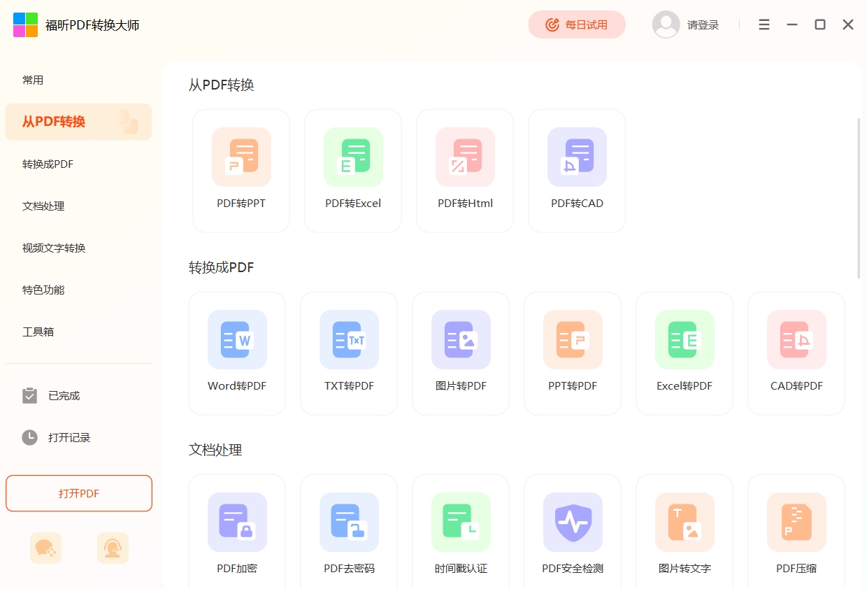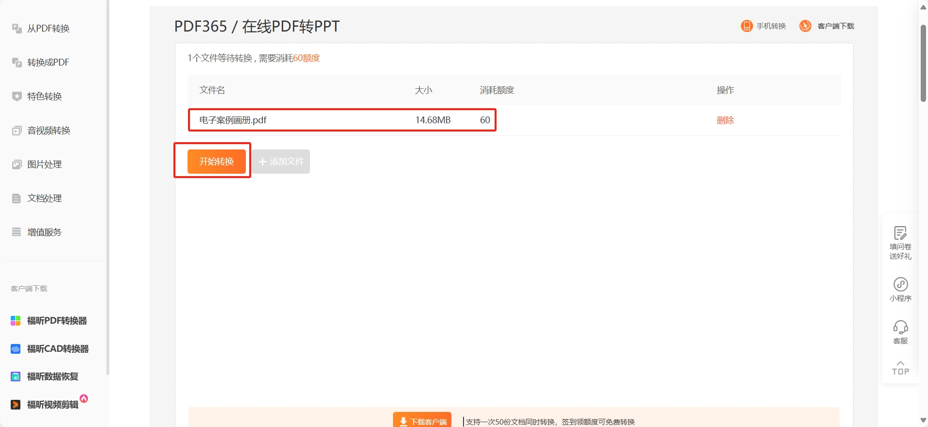 多个PDF文档怎么做才能够更快的转换成PPT?除了将多个PDF合并后再转换,我们还可以用福昕PDF365的批量转换功能,将多个PDF文档批量转换成PPT。这款工具支持多种格式转换,无论是PDF转PPT还是PDF批量转PPT都可以轻松搞定,那么下面我们就一起来看看这款工具是如何将PDF文档批量转换成PPT格式的吧。