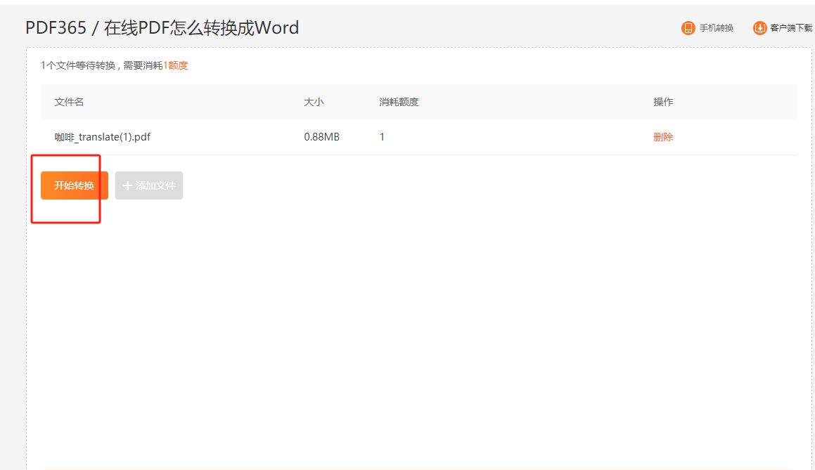③进入新的在线PDF转Word页面