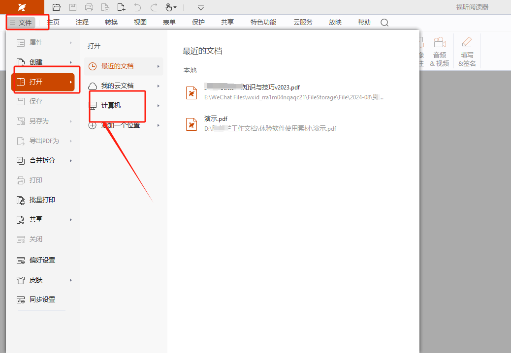 ①打开福昕阅读器