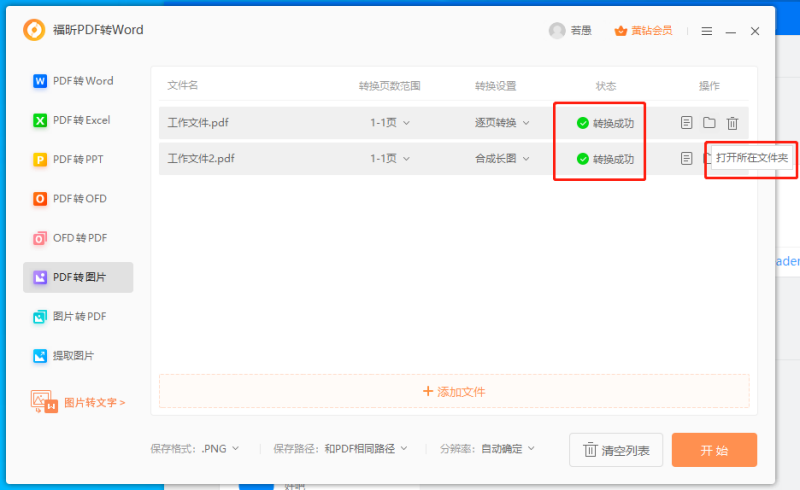 点击“开始转换”,等待转换完成后,即可在指定的输出文件夹中找到转换后的多张图片。