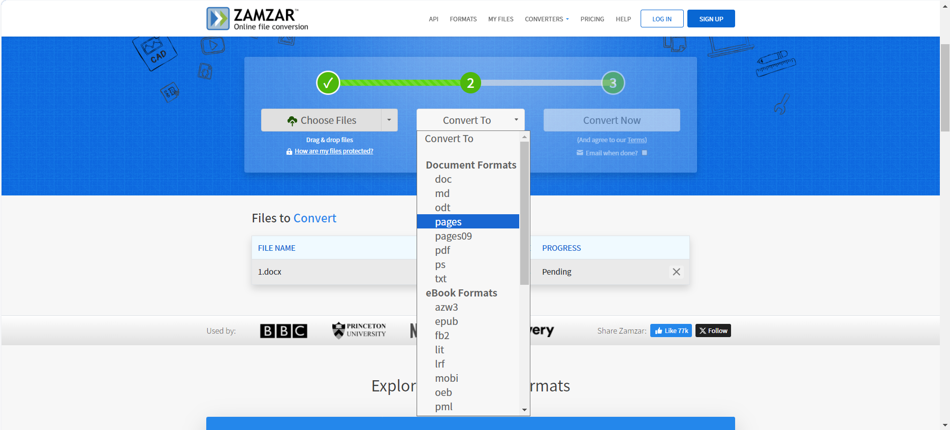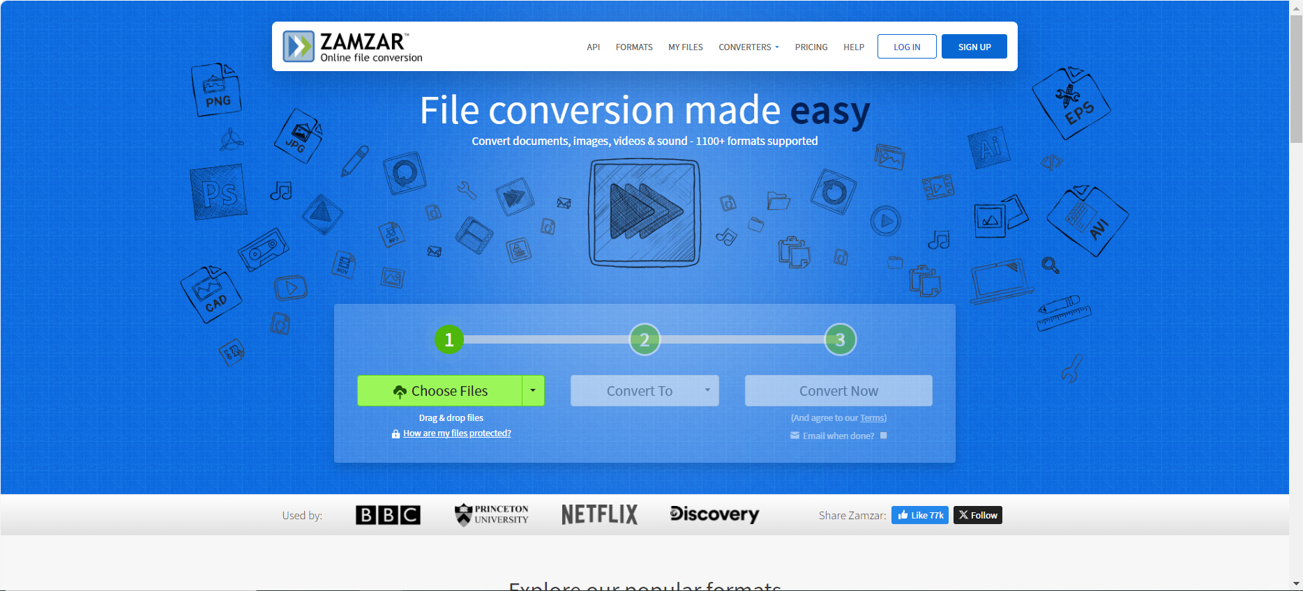 第一步:打开Zamzar官网,点击“Add Files”按钮,选中要转换的Excel表格,支持一次性多选。