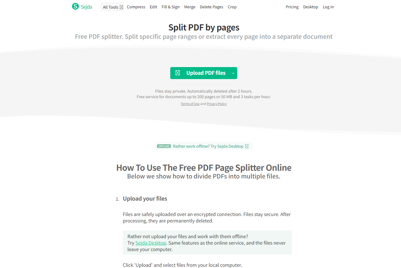 拆分功能细节超贴心,支持按页码范围、固定页数拆分,还能按奇偶页提取,甚至能手动在页面间设置拆分点,满足多样需求。支持批量拆分多个PDF文件,一次处理多个文档,大大节省时间。采用加密技术,文件2小时自动删除,隐私有保障,界面无广告,操作流畅,不用注册就能免费使用,单个文件最大支持50MB,日常办公够用。