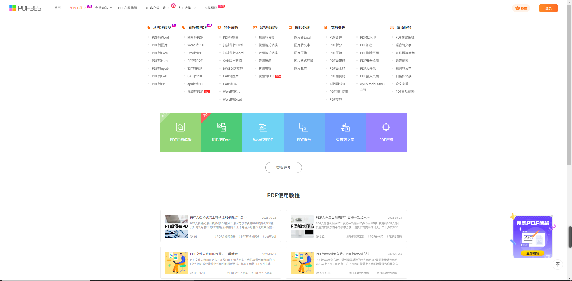 福昕PDF365是一款在线PDF转换器,支持PDF转换,PDF合并,拆分等操作,一站式解决文档转换编辑问题。