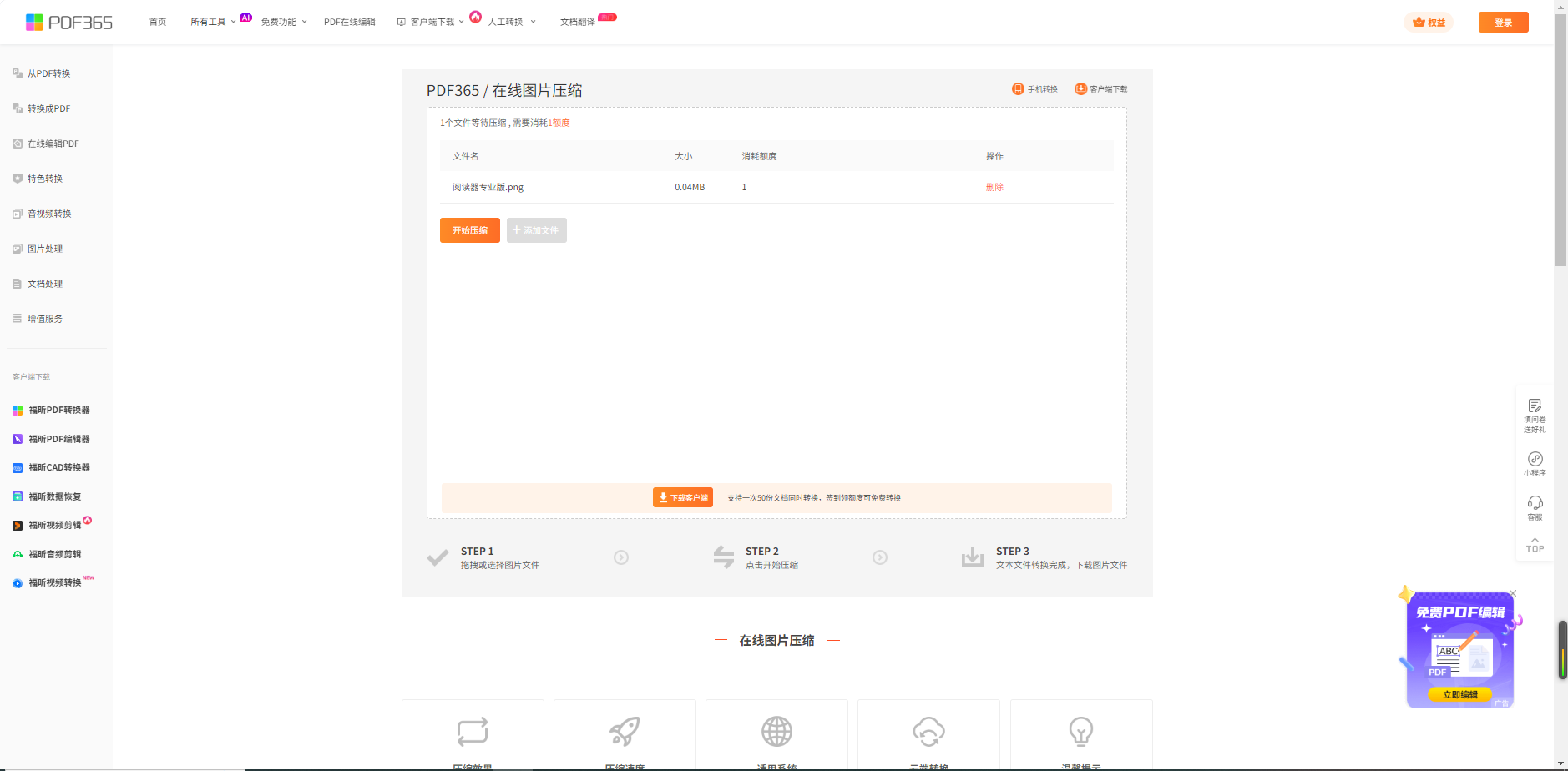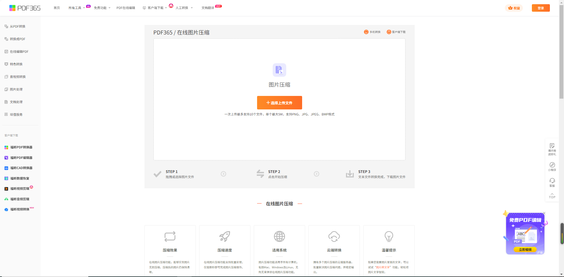 第一步:打开福昕PDF365官网,找到“图片压缩”功能点进去;