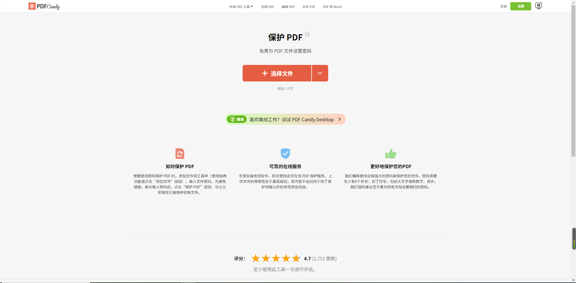 第一步:打开官网加密工具,上传单个或多个PDF文件。