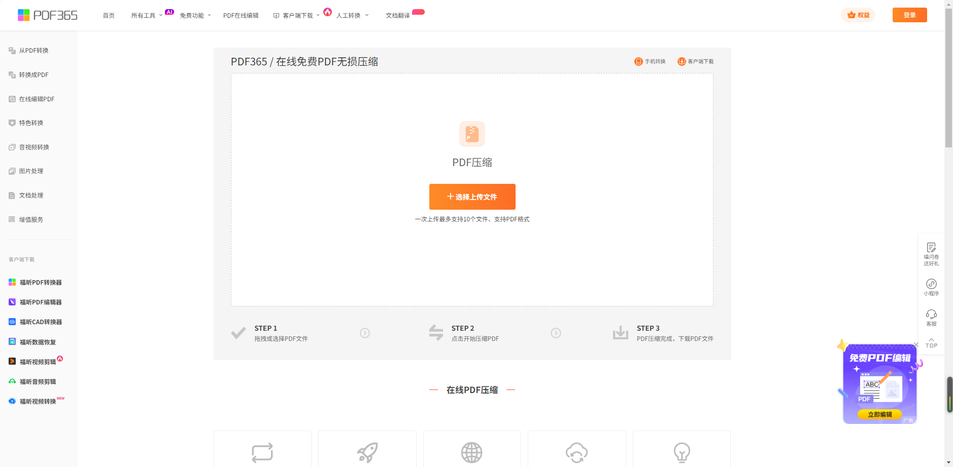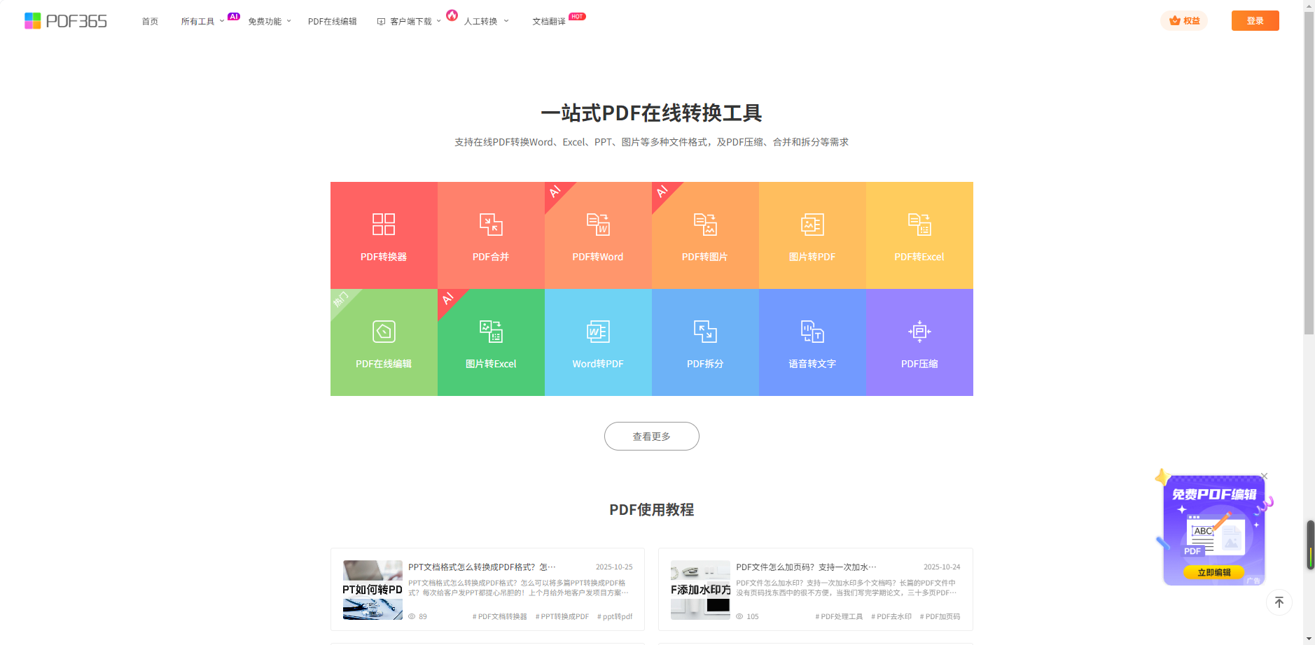 福昕PDF365是一款在线PDF转换器,支持PDF转换,PDF合并,拆分等操作,一站式解决文档转换编辑问题。