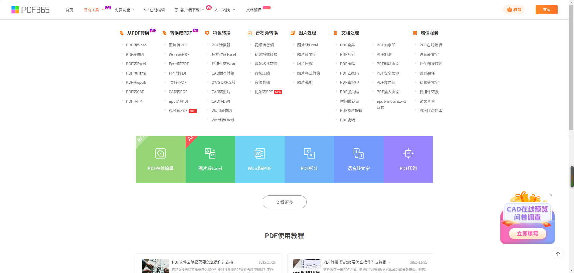 福昕PDF365是一款在线PDF转换器,支持PDF转换,PDF合并,拆分等操作,一站式解决文档转换编辑问题。