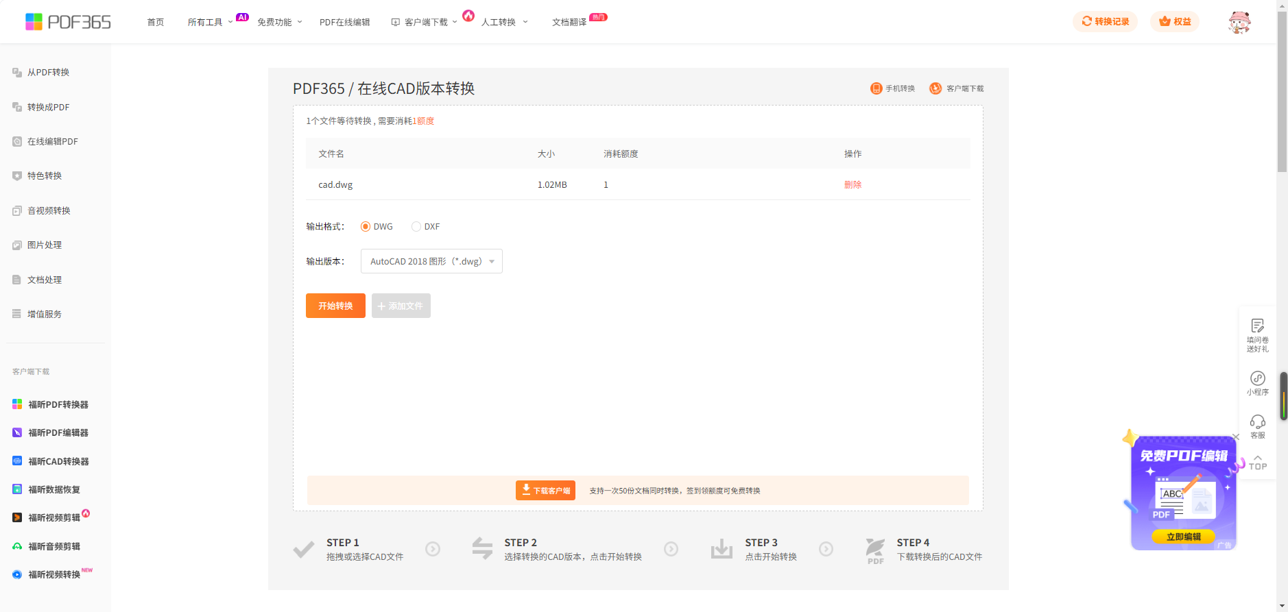 第一步:进入官网后点首页的“CAD转换器”图标,