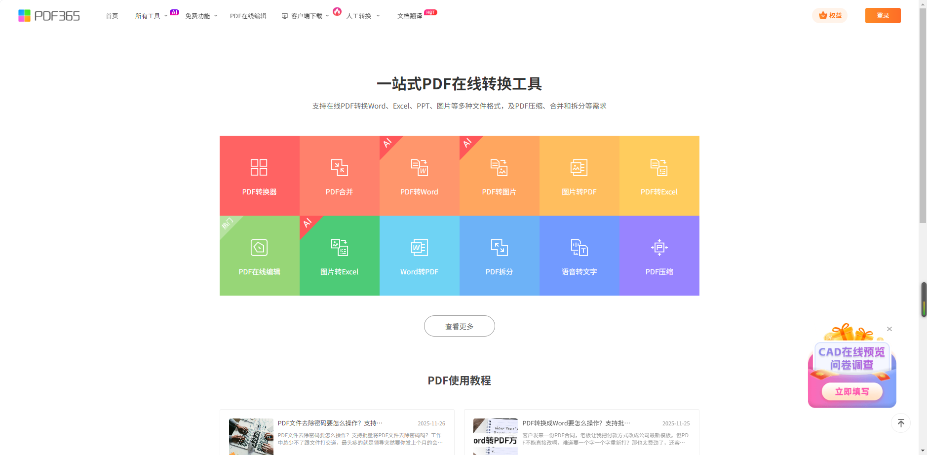 福昕PDF365是一款在线PDF转换器,支持PDF转换,PDF合并,拆分等操作,一站式解决文档转换编辑问题。