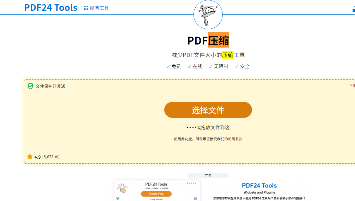 第一步:访问PDF24 Tools官网,找到“Compress PDF”功能,上传需要压缩图片的PDF文件;