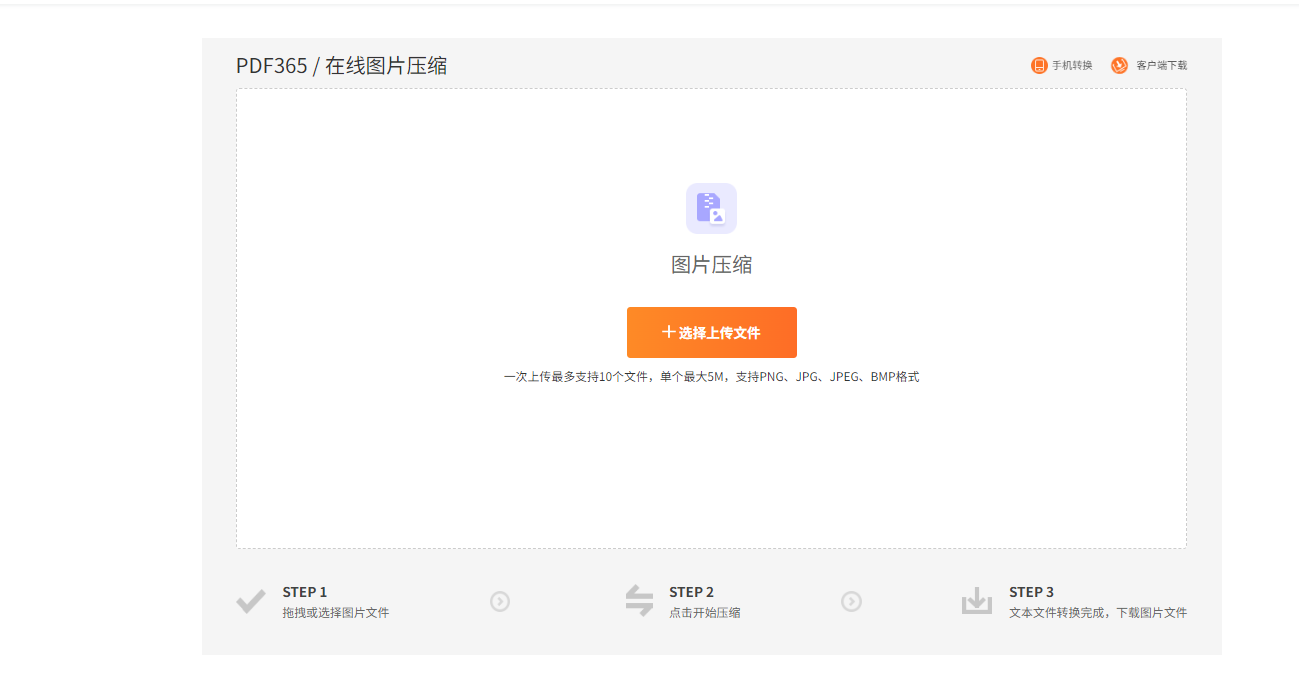 第一步:打开福昕PDF365官网或客户端,找到“图片压缩”功能模块,点击“添加文件”上传需要压缩图片的PDF;