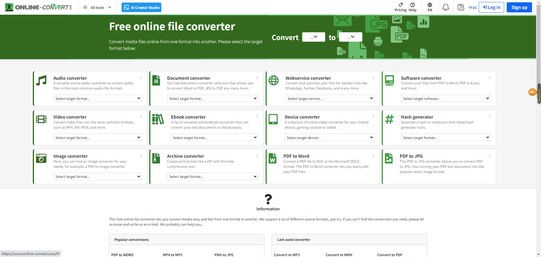 Converter是专门适配演示文稿转换的国外在线工具,PPT转PDF功能精准又高效。不用注册登录,打开浏览器就能直接用,上传文件支持本地和云存储导入,很灵活。转换时能完整保留PPT的页面布局、图片清晰度和文字格式,就算带复杂图表的PPT也能完美转换。处理速度快,10MB以内的文件几秒就能完成,转换后无水印,文件处理完24小时自动删除,隐私有保障,日常轻量转换很合适。