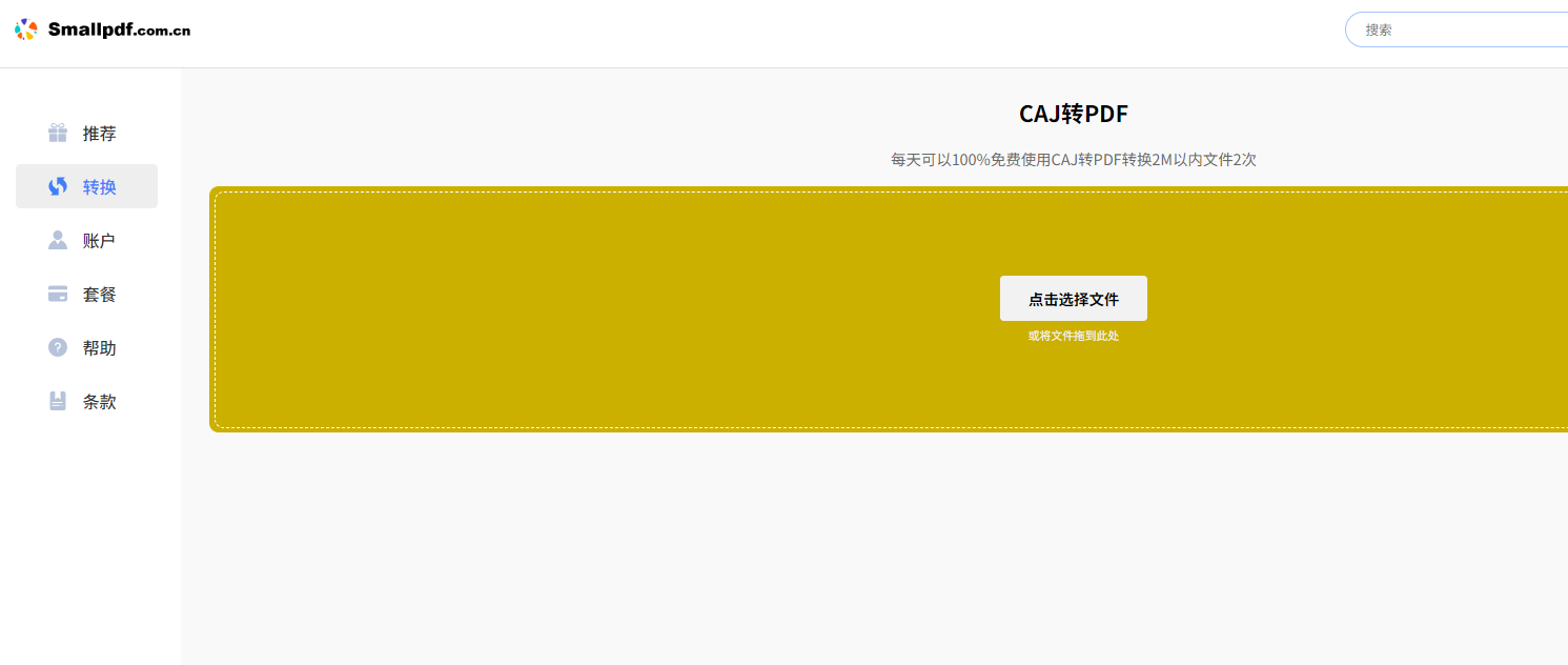 第一步:访问SmallPDF官网,找到“JPG转PDF”功能模块,将需要转换的图片拖入上传区域;