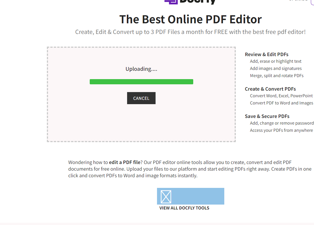 第一步:访问DocFly官网,找到“JPG to PDF”(图片转PDF)功能,将图片拖进上传区域或点击选择文件上传;