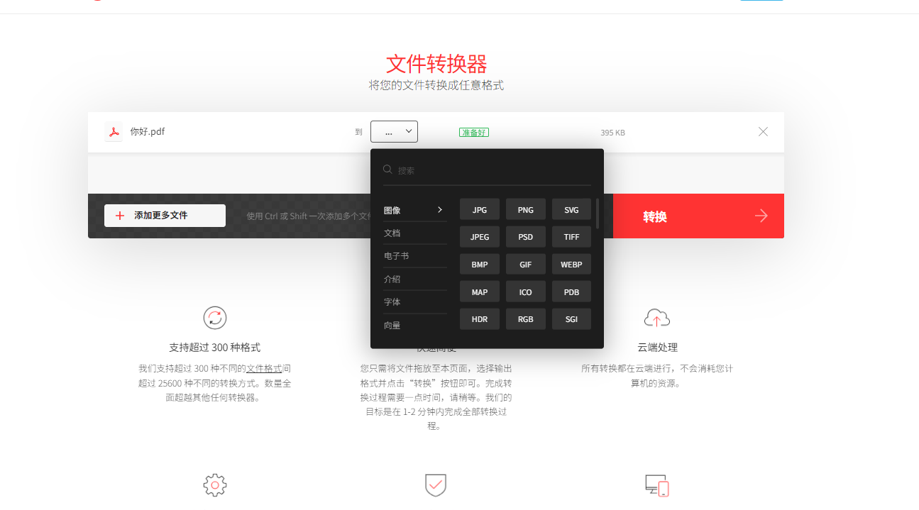 第二步:在输出格式里选“PDF”,确认好转换设置后点“转换”,等它弄完,下载生成的PDF文件就搞定了。