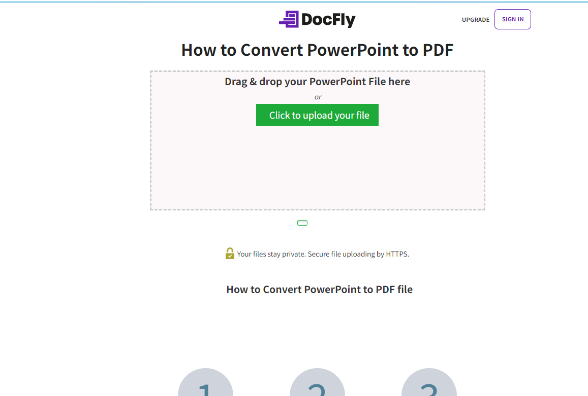 第一步:访问DocFly官网,找到“PPT to PDF”功能,将PPT文件拖进上传区域或点击选择文件上传;