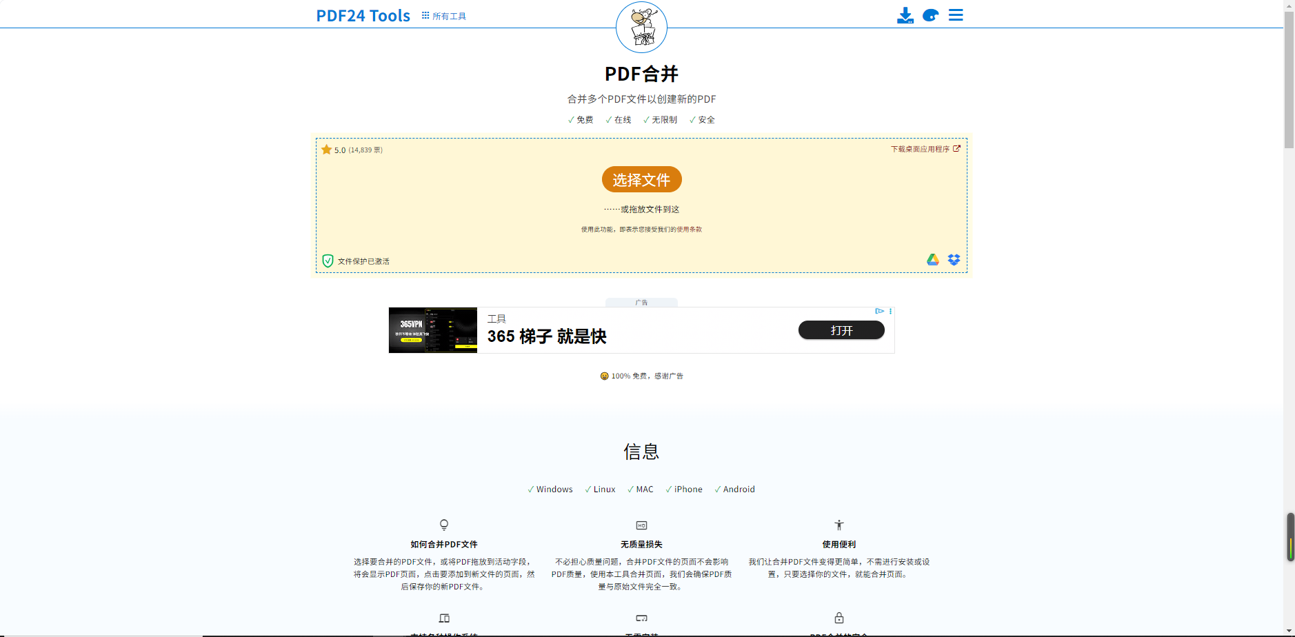 想把好几个PDF文件合成一个?用福昕PDF365在线转换超简单!不用下载软件,打开网页就能用,手机电脑都能操作,随时随地合并文件。它合并速度快,十几页的PDF几秒钟就搞定,而且画质一点都不会糊,文字图片都清清楚楚。最关键是安全,文件处理完自动删除,不用担心隐私泄露。免费用户就能用PDF合并功能,对咱们日常办公、学生党整理资料来说完全够用,赶紧试试吧!