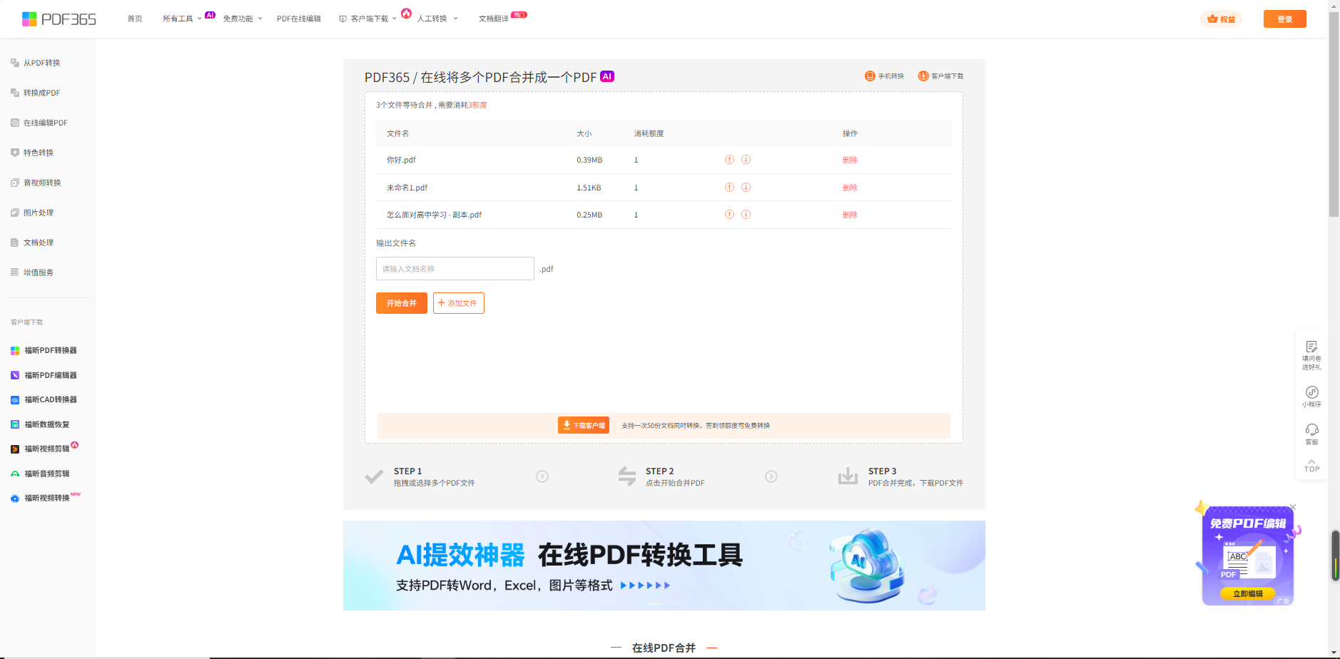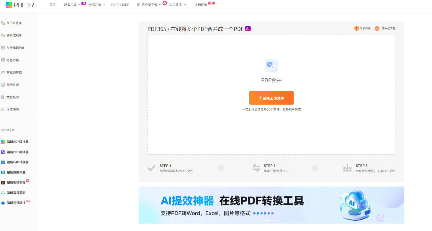 福昕PDF365支持在线将多个PDF合并成一个PDF,一键合并,便捷高效。