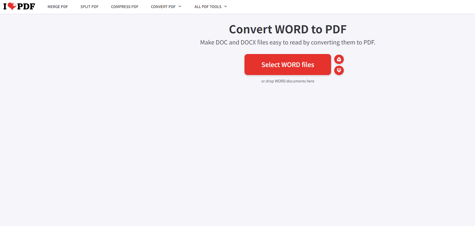 第一步:打开网站,在上传区添加Word文件,支持多种添加方式。