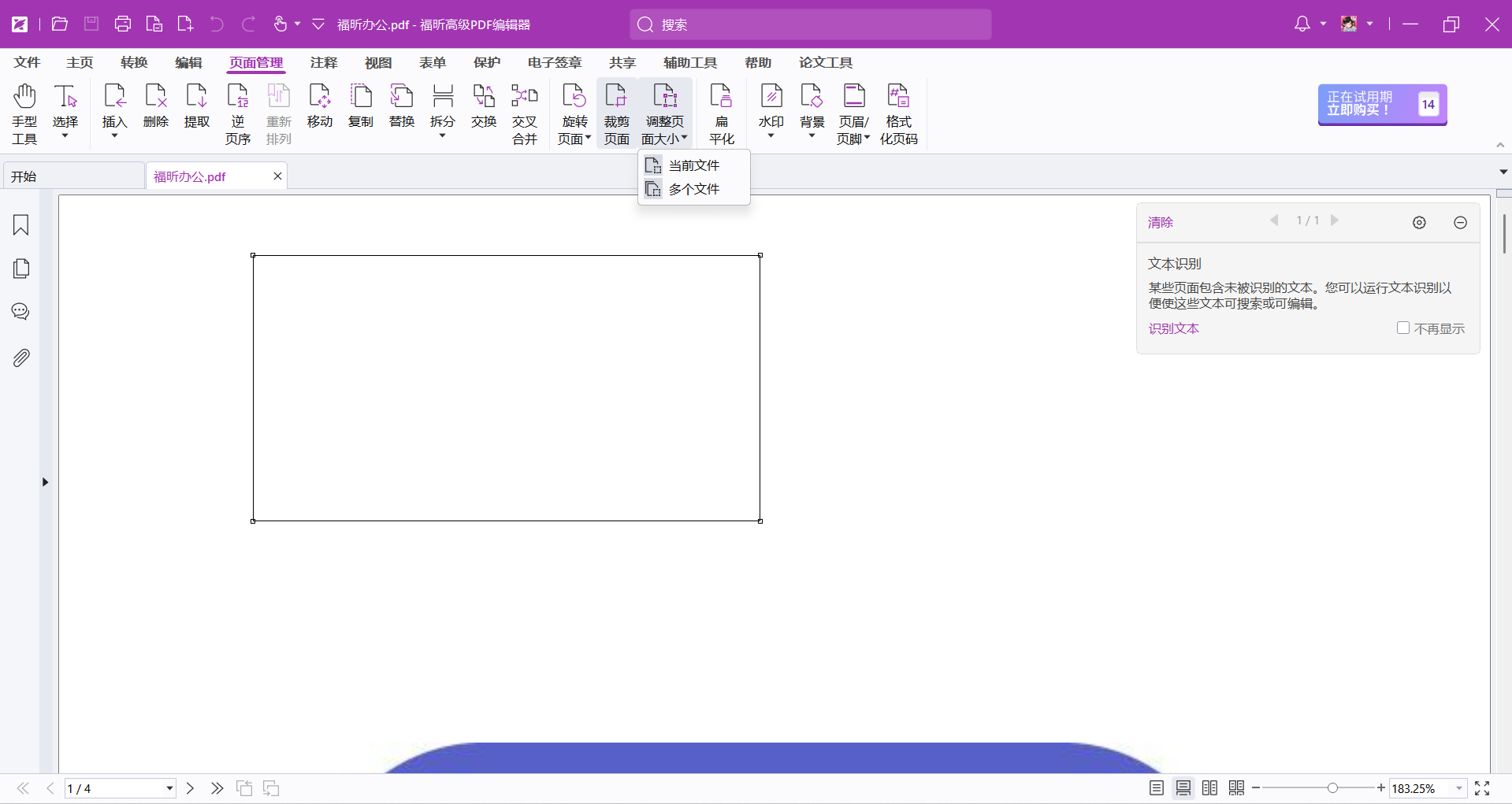 PDF页面大小不一致?PDF页面过大?不管是什么原因,当我们遇到PDF页面大小需要调整的时候,可以利用专业的工具来处理PDF文档页面的调整。今天要和大家分享的是福昕高级PDF编辑器的操作步骤,这是一款专业度极高的PDF编辑器,不仅拥有丰富的基础编辑功能,而且还具备各种高级的权限设置功能,先来看看怎么调整PDF页面大小的调整吧。