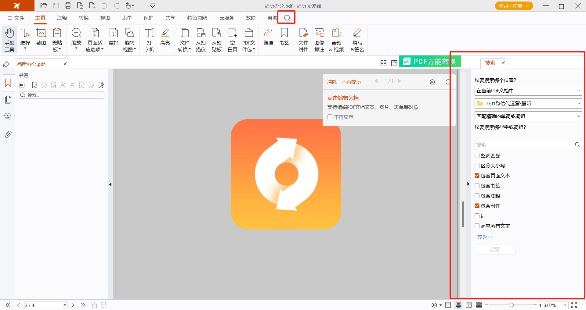 当我们某个名字或者是词汇出现问题的话,要怎么修改它?是一个字一个字的去修改还是直接一键替换,如果你想要一键替换PDF文档中的部分文字,我们可以选择使用福昕PDF阅读器来处理。这款工具不仅可以帮助我们搜索文档中的关键词,还可以一键标记和替换,来看看具体要怎么操作才能够一键替换文本吧。