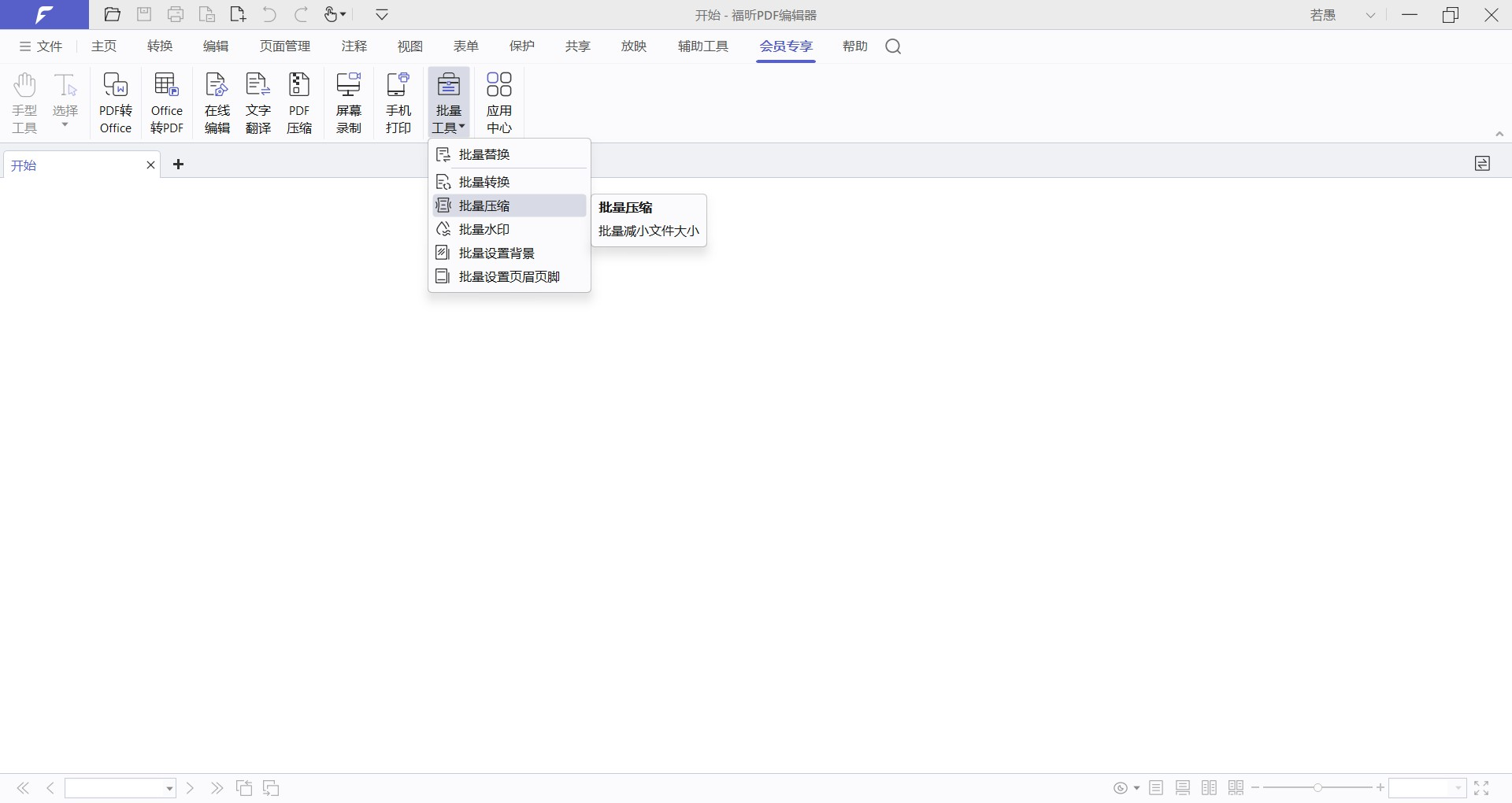 点击链接,下载正版福昕PDF编辑器,下载完成后点击安装到电脑中。安装成功后就可以双击软件开始使用了。然后点击【会员功能】中的【批量压缩】,唤出压缩插件。