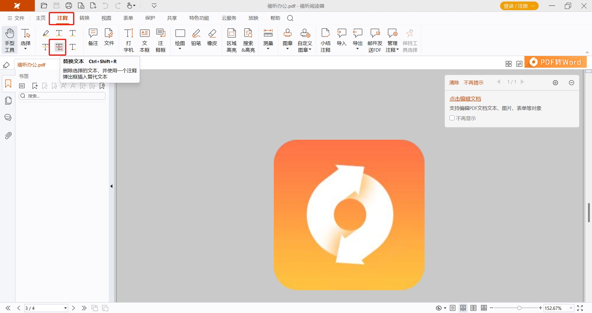 福昕PDF编辑器支持PDF编辑的同时也支持PDF文档注释的添加,这是一款专业的PDF编辑器。这款工具不仅支持PDF文档注释删除线,还可以设置波浪线、下划线以及其他多种不同的注释方法。具体的步骤已经整理好放在下面了,需要的小伙伴千万别错过哦!