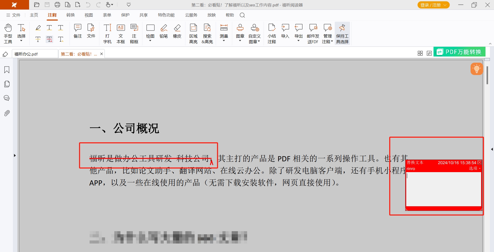 在处理PDF文档时,有时候我们需要用删除线来标记那些不再适用或需修正的内容,但你是否发现直接在PDF中添加删除线并不像编辑Word那么简单?其实,掌握几招小技巧,就能轻松为PDF内容划上删除线,既保留了原文的痕迹,又清晰传达修改意图。无论是工作报告还是学习资料,给文字加个“穿越时空”的划线,不仅让文档更具层次感,还能帮助阅读者快速抓住重点变化,效率瞬间UP!