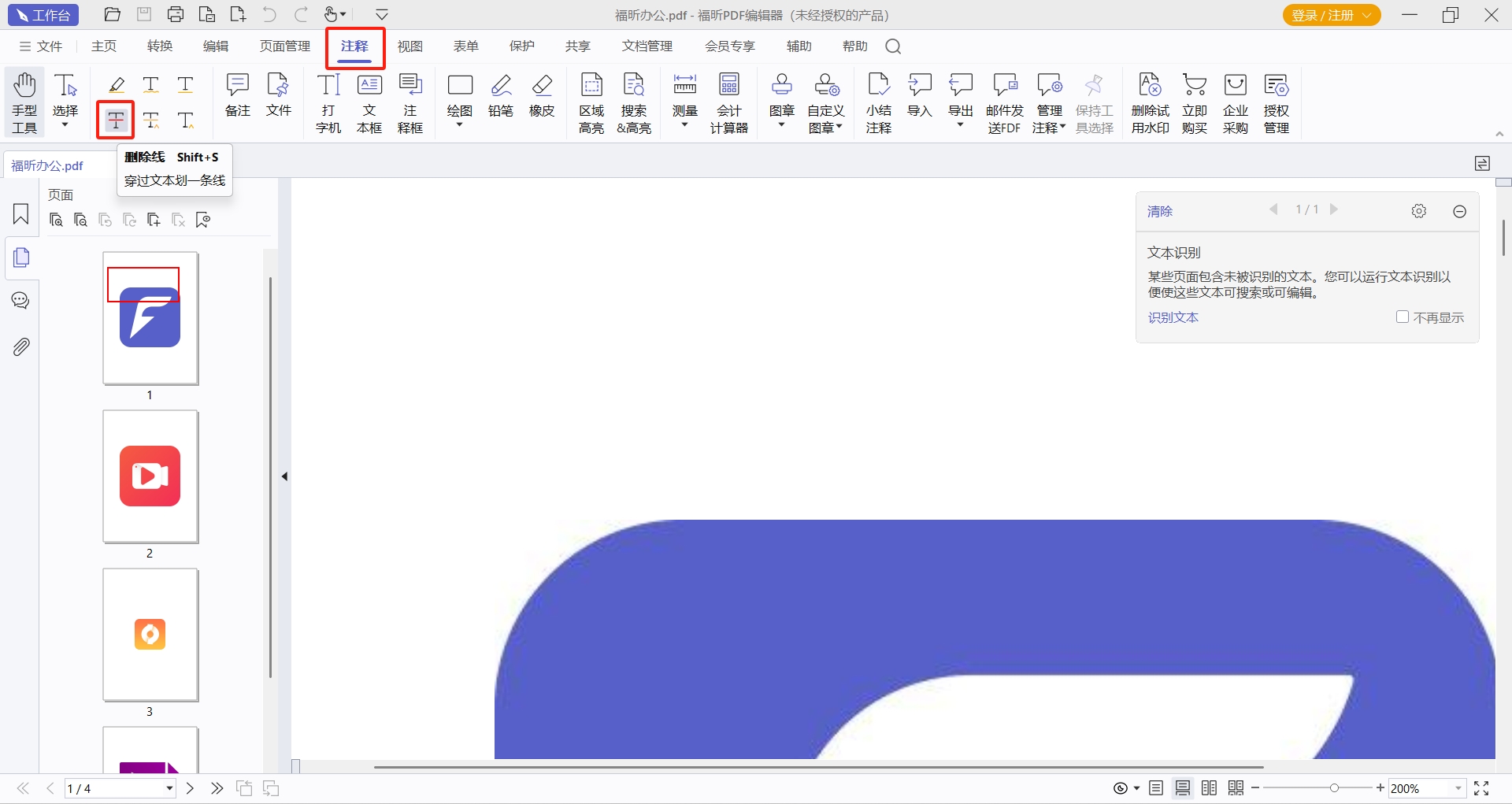 福昕PDF编辑器支持PDF编辑的同时也支持PDF文档注释的添加,这是一款专业的PDF编辑器。这款工具不仅支持PDF文档注释删除线,还可以设置波浪线、下划线以及其他多种不同的注释方法。具体的步骤已经整理好放在下面了,需要的小伙伴千万别错过哦!