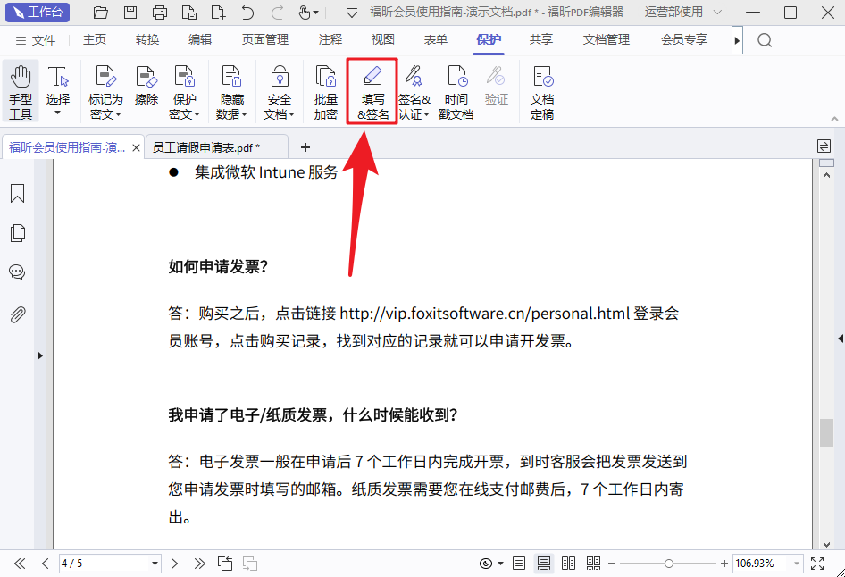 在【福昕PDF编辑器】官网,下载安装【福昕PDF编辑器】到自己的电脑上。然后这里可以选择先打开一个PDF文档,然后选择【保护】中的【填写&签名】,然后进入下一步。