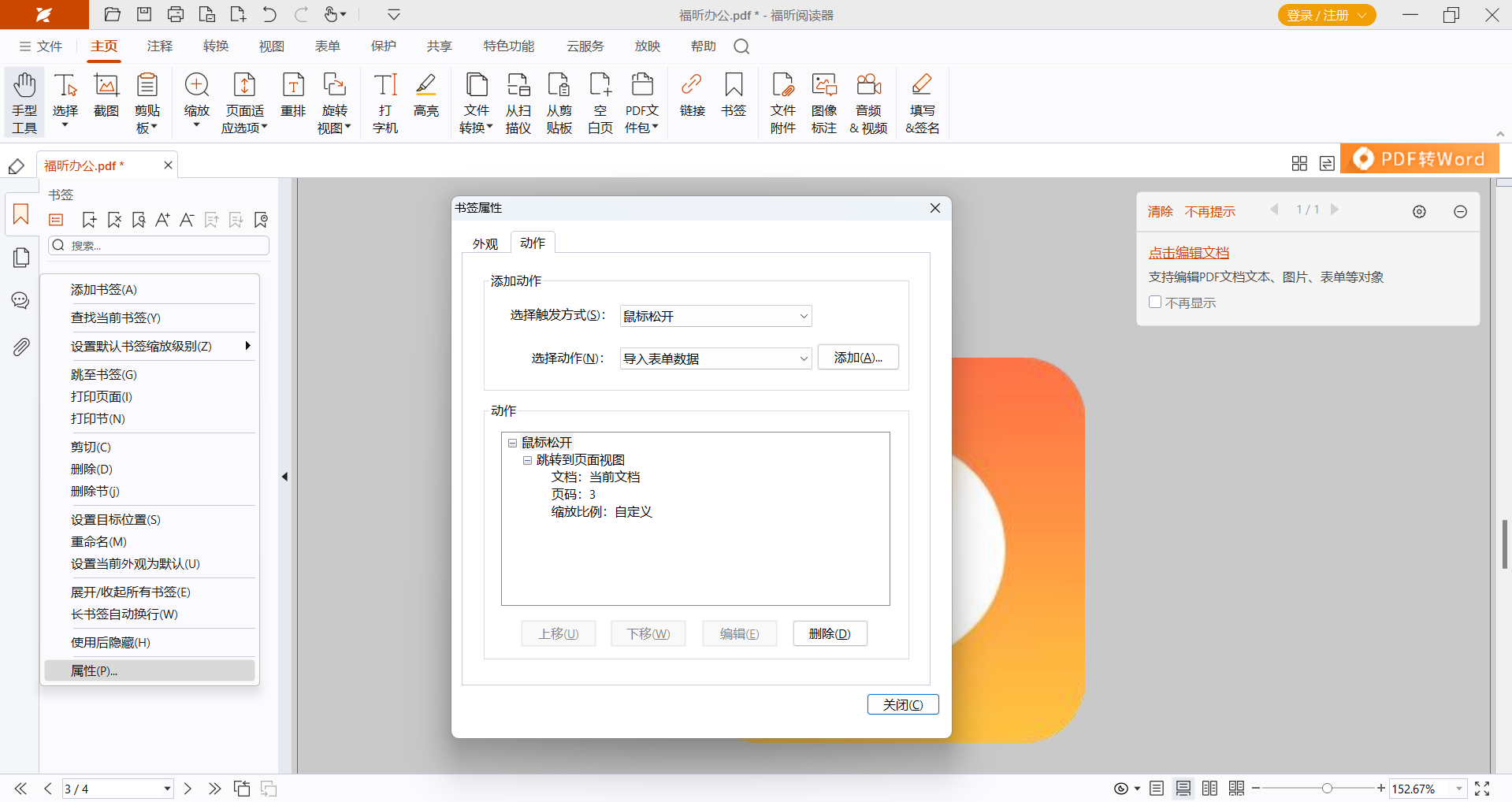 如何将PDF文件中的书签转换为PDF目录?PDF文件虽然不能直接编辑,但是通过专业工具我们可以实现创建PDF目录的操作,福昕PDF编辑器支持基于书签结构创建目录,操作简便,适合日常办公使用。这款工具具备丰富的编辑功能和页面管理功能,下面一起来了解一下福昕PDF编辑器是如何将PDF书签转换为PDF目录的吧。