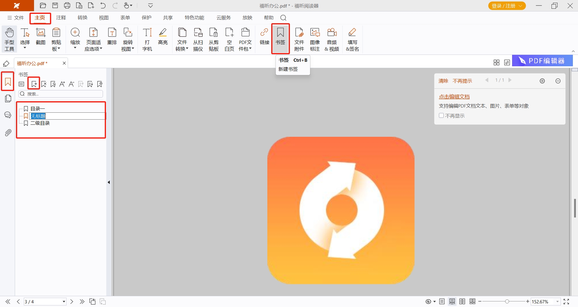 如何将PDF文件中的书签转换为PDF目录?PDF文件虽然不能直接编辑,但是通过专业工具我们可以实现创建PDF目录的操作,福昕PDF编辑器支持基于书签结构创建目录,操作简便,适合日常办公使用。这款工具具备丰富的编辑功能和页面管理功能,下面一起来了解一下福昕PDF编辑器是如何将PDF书签转换为PDF目录的吧。