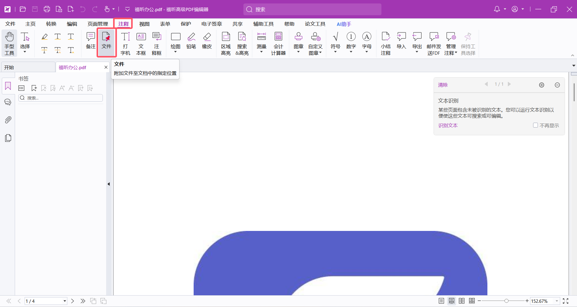 福昕高级PDF编辑器怎么给PDF文档添加附件?