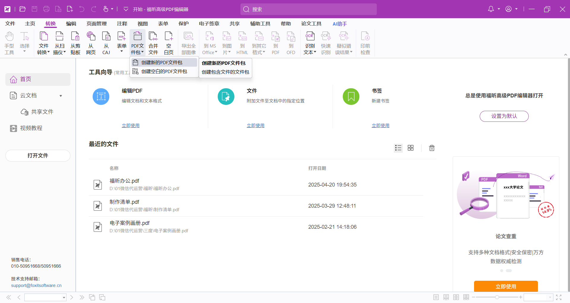 福昕PDF编辑器创建PDF文件包的步骤是什么?