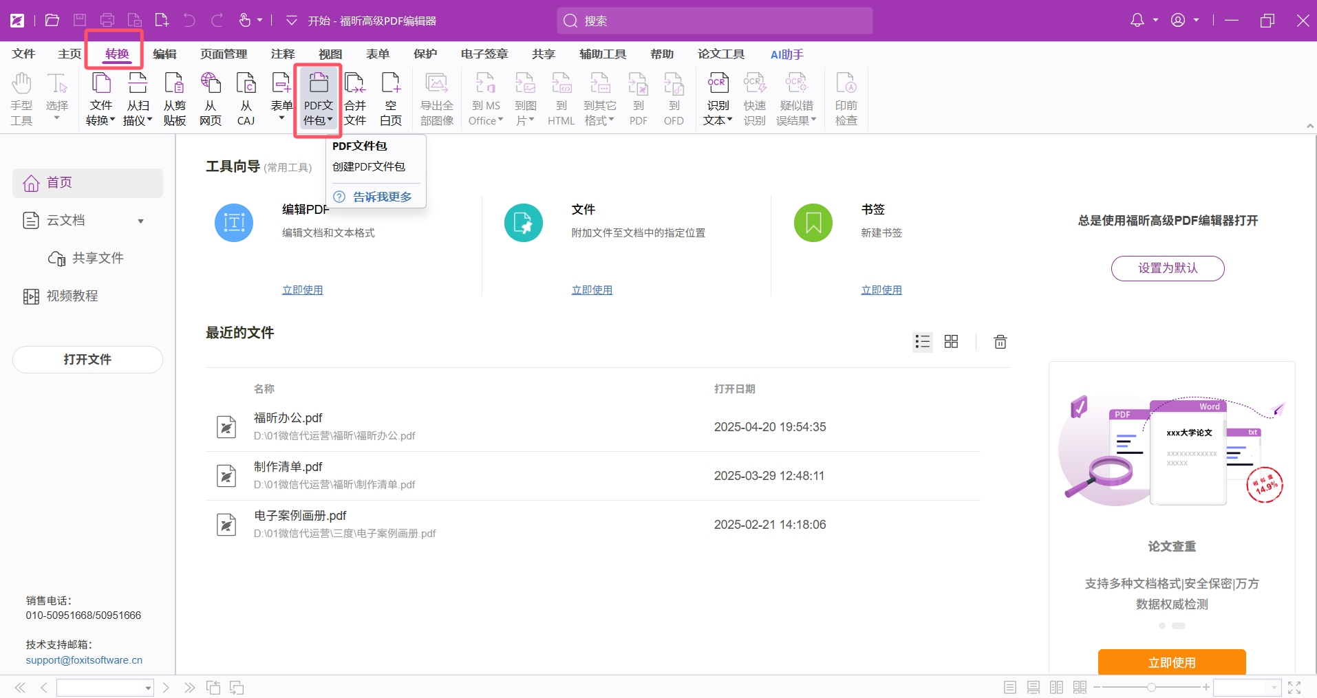 福昕高级PDF编辑器怎么创建PDF文件包?