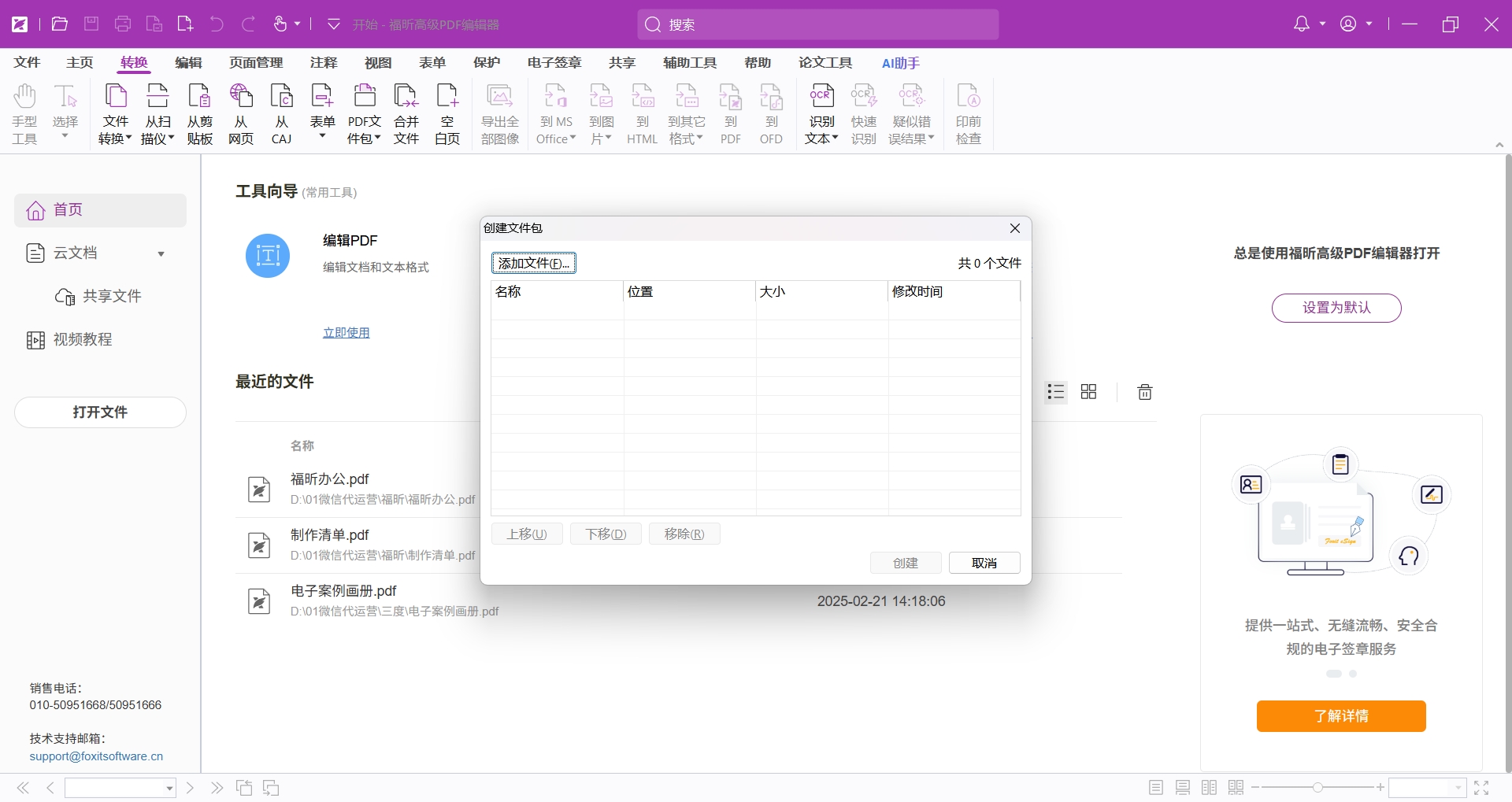 福昕PDF编辑器创建PDF文件包的步骤是什么?